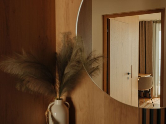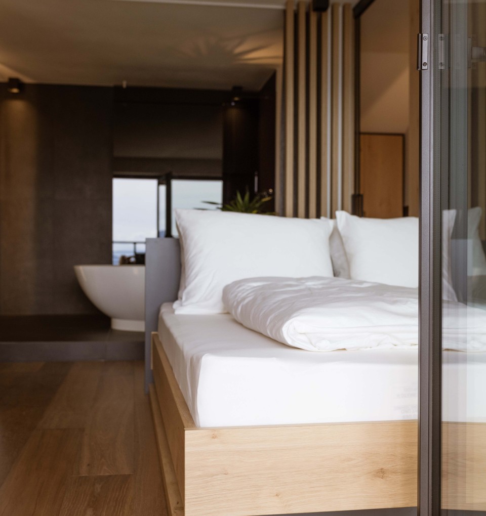 Die Natur und eine nachhaltige Lebensweise erfahren nicht nur in der Küche höchstes Ansehen und Wertschätzung, sondern auch in den Suiten. Dafür sorgen ausgewählte Baumaterialien von Südtiroler Firmen, erneuerbare Energien und ein Recyclingkonzept.