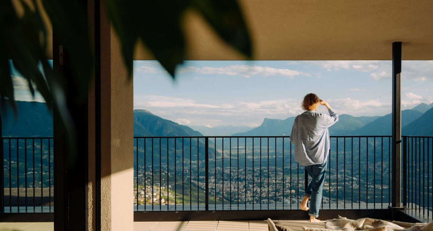 Hoch oben in Dorf Tirol gelegen, reicht der Blick über das breite Tal bis zum Horizont. In der Nacht funkeln die Lichter der Kurstadt und die Sterne am Firmament. Atemberaubend - die Schönheit einer lauen Sommernacht.