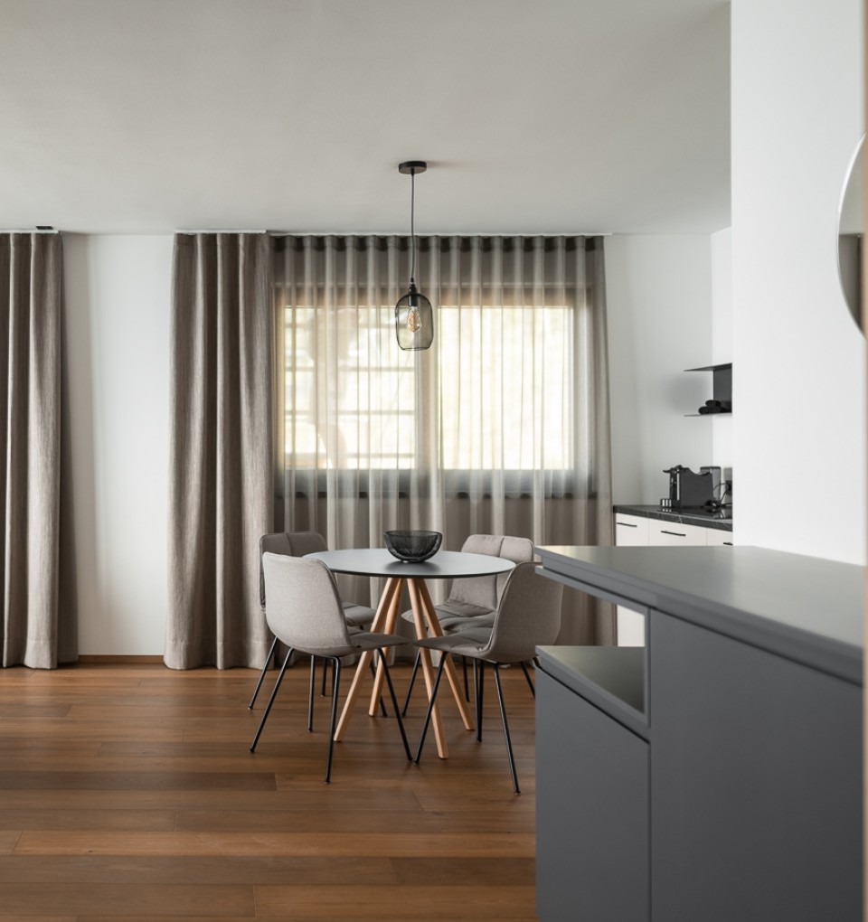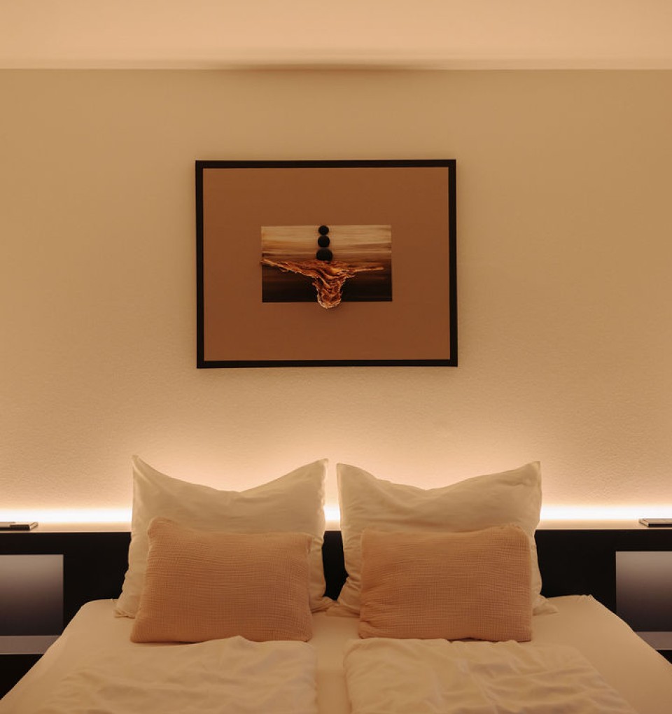 L’importanza della natura e di uno stile di vita sostenibile viene percepita non solo in cucina, ma anche nelle suite. È garantita da materiali da costruzione pregiati e provenienti da aziende altoatesine, da energie rinnovabili e da un concetto di riciclaggio.