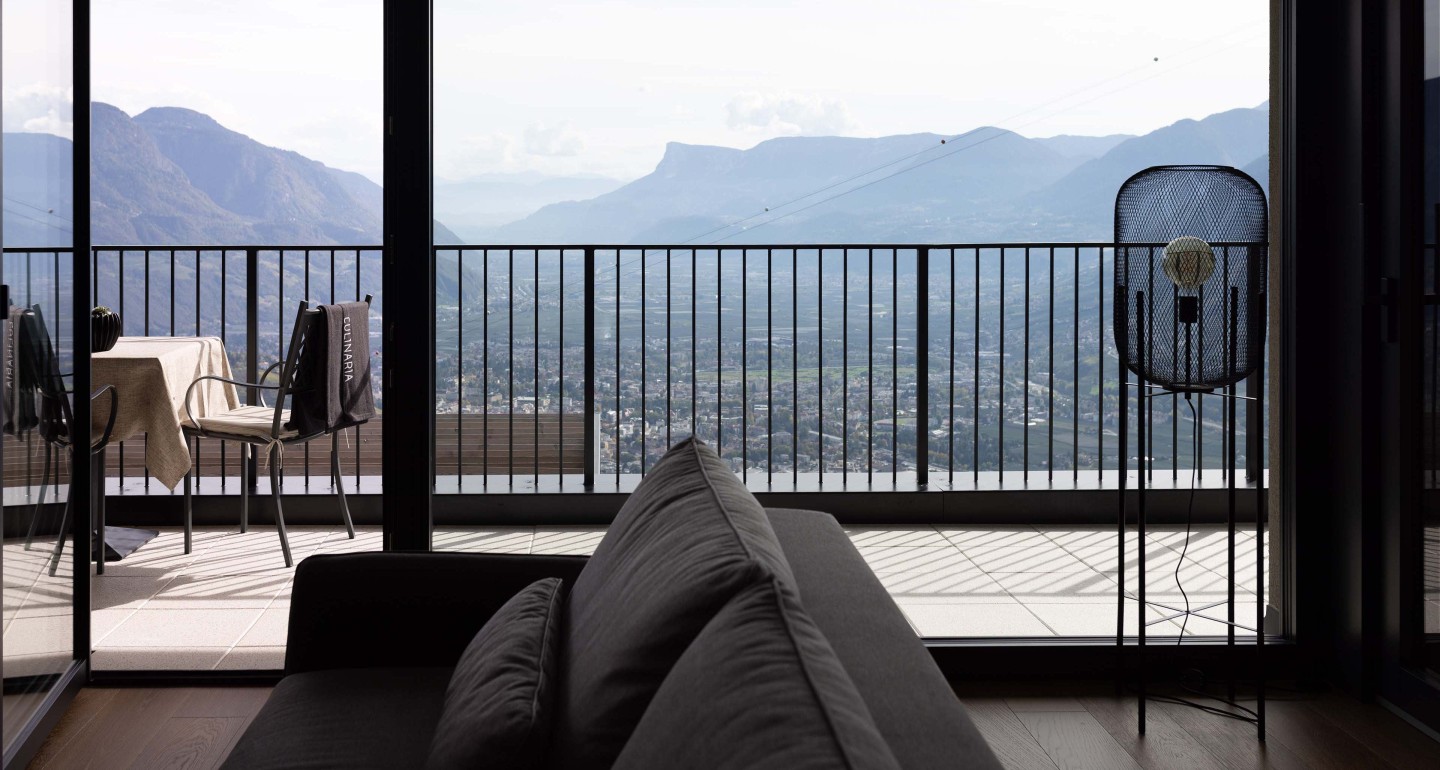 Situato in alto a Tirolo, la vista si estende sull'ampia valle fino all'orizzonte. Di notte, le luci della città di cura e le stelle scintillano nel cielo. Mozzafiato - la bellezza di una mite notte d'estate.